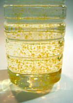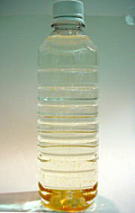 黄色の沈殿沈殿物がペットボトルの底にたまっています。